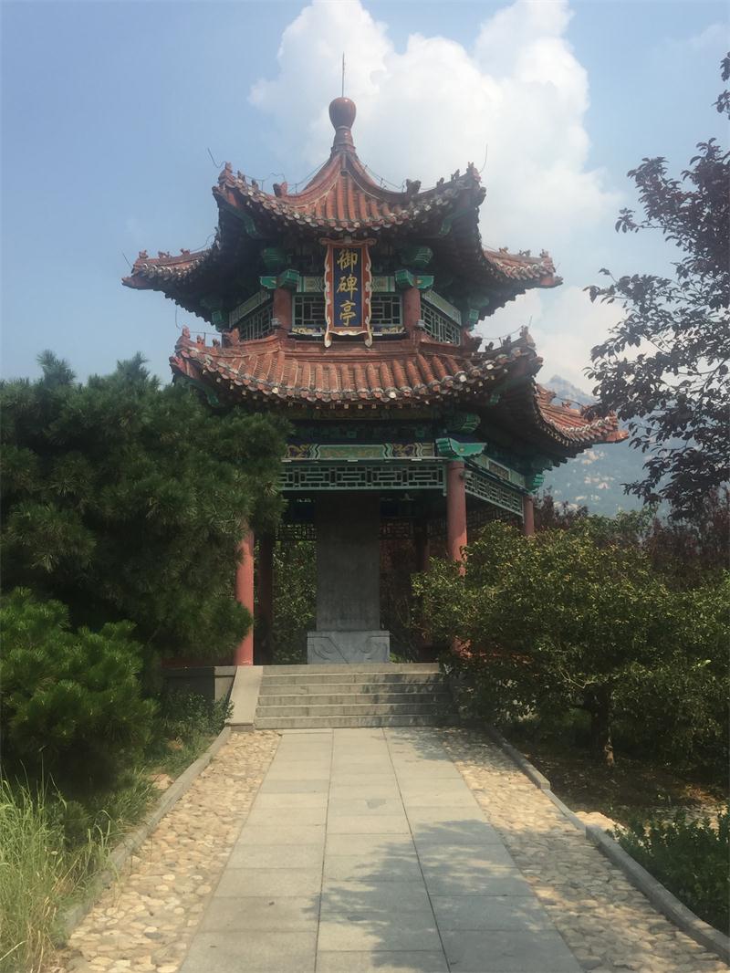 該亭高 8 米, 六角重檐尖頂 ,亭內(nèi)置“ 御碑”, 碑高 3.15米, 寬 1.10 米, 厚 0.37米, 清代風格。碑刻康熙四十二年御制詩一首, 作者是清圣祖康熙皇帝, 名玄燁。目前這里已成為泰山廣場的一大文化景點。